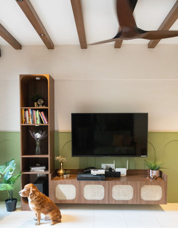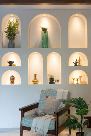 The Timber Tale combines an array of timeless architectural elements including beautifully curved arches, meticulously lime plastered walls, earthy green panelling, and intricate wooden and cane details. These features collectively craft an ambiance that is both warm and classically refined. The carefully chosen wooden members that elevate the ceiling enhance the overall aesthetic, bringing a sense of coziness and homeliness to the space.